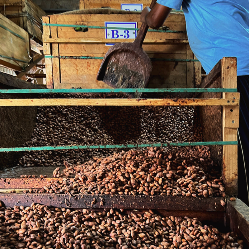 Hoy en día, los granos de cacao, con su pulpa, se colocan en cajas de fermentación donde se controla meticulosamente la temperatura, el tiempo y el aireado. Luego, son secados, tostados y transformados en chocolate. En cada cosecha, los especialistas estudian las características del grano y determinan el punto exacto de fermentación que requiere.